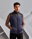 Tonal reverse coil zip on centre front with signature zip puller. Contour stitched sandwiched narrow baffles. 250gsm lightweight polyester fill. Internal binding on all seams. Stretch binding around armholes and hem for added protection. Contrast shoulder panelling. Reverse coil zips on pockets. Internal back neck hanger loop. Product contains no branded neck label.* Removable Kimble or looped garment tags. Inner seam label holds important product information on one label with a second label containing brand information which can be cut-away.